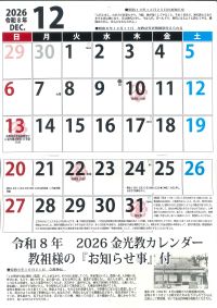 本部広前の祭典日などがひと目で分かる、壁掛け二つ折りのカレンダー。